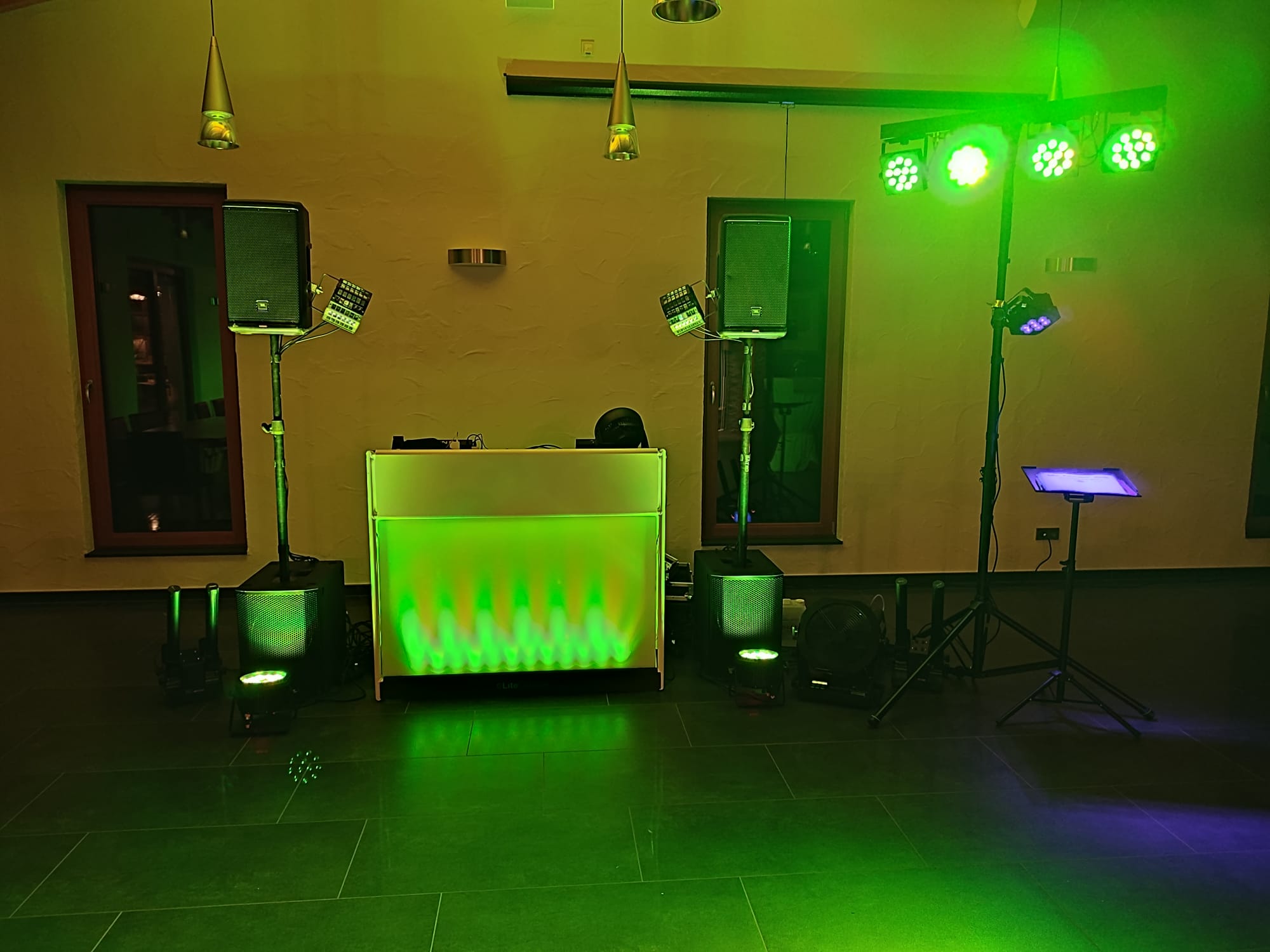 - Lichttechnik Tanzflächen Grundbeleuchtung von einer 4er LED Bar und etwas indirekter Beleuchtung im Dj Tisch
